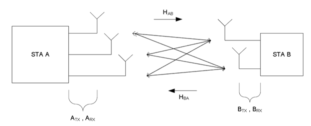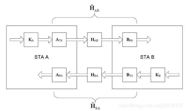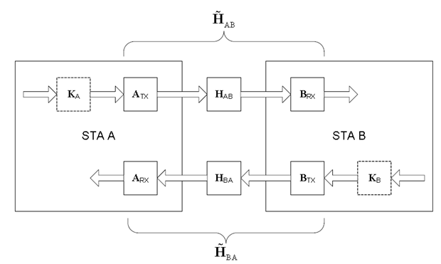 进行校准以后,从STA A到STA B的信道与从STA B到STA A的信道有如下关系: