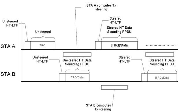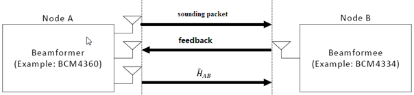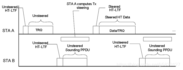 根据上图,站A需要对A to B的发送进行波束成形,隐式反馈的过程由A(beamformer)发起:
