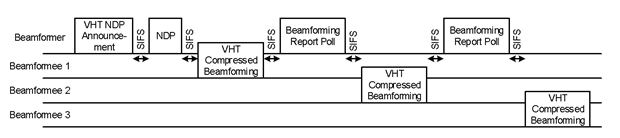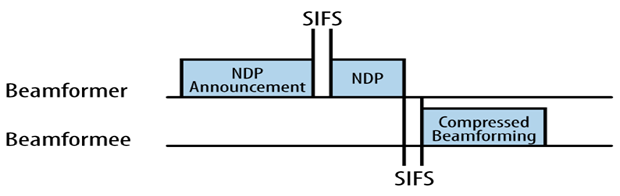 - Beamformer发送NDPA帧,用来宣布要开始波束赋形了