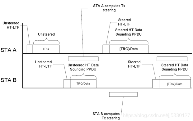 。 - B向A发送sounding PPDU探测帧,A收到以后计算