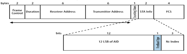 - AID:beamformee的association ID,对应Association Response. Association ID。