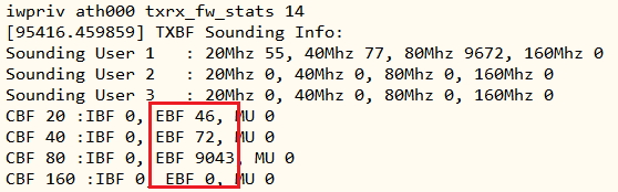 | Channel Width | 带宽,指示了测量的信道宽度 | 0:20MHz,1:40MHz,2:80MHz,3:80+80or160MHz | |