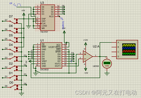其中前三个实验环境为Multisim,最后一个因为Multisim没有DAC芯片,就用了Protens。