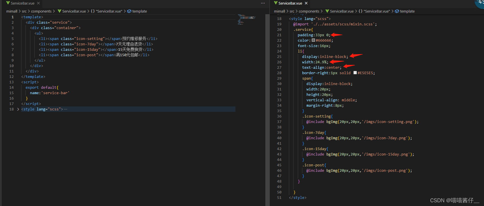1好多页面都使用了,进行封装,单弄出一个组件 serviceBar