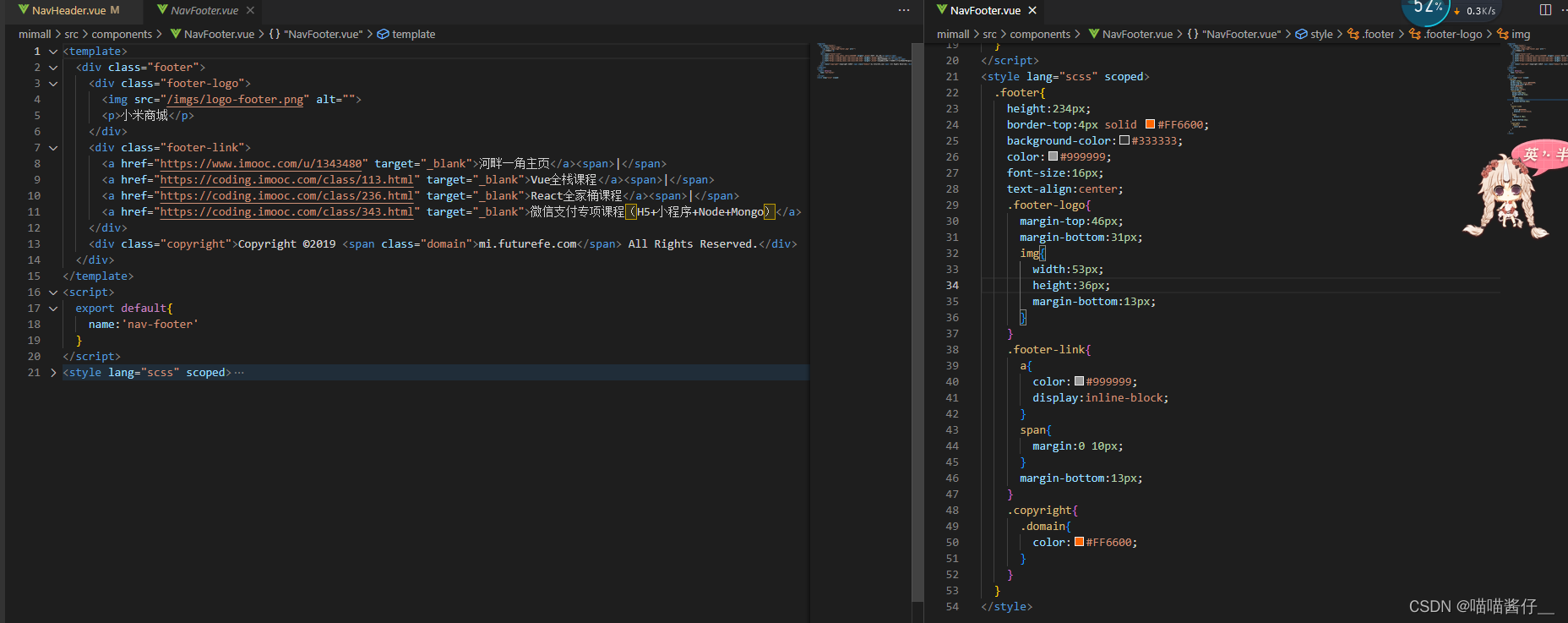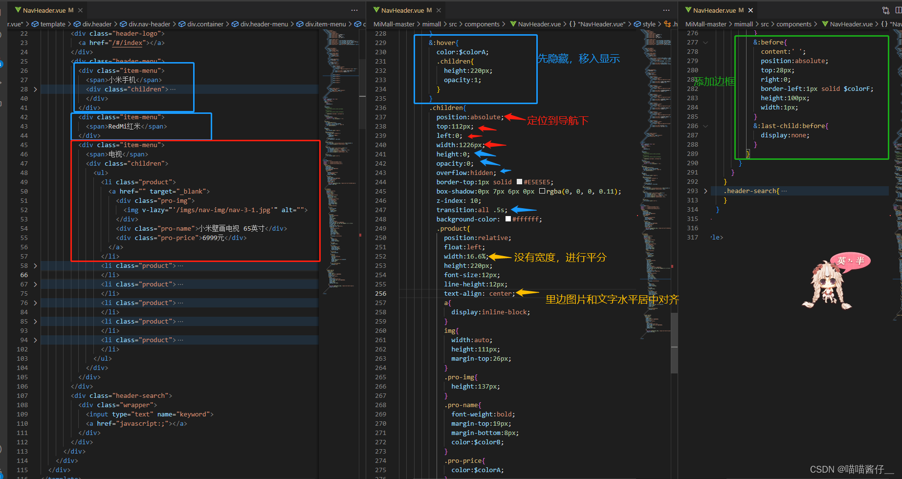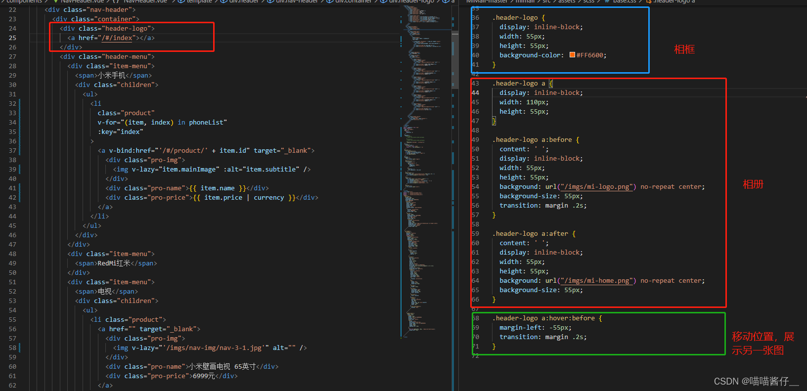 2.1 菜单下边有子区域,用a就不太合适了,我们用div