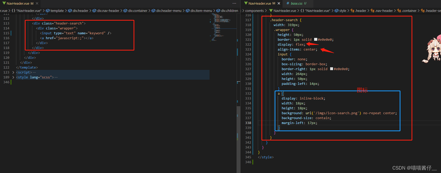 div > (input + a) : 搜索图标 带手而且可以跳转,所以用a