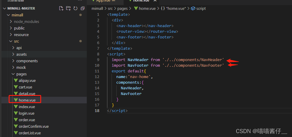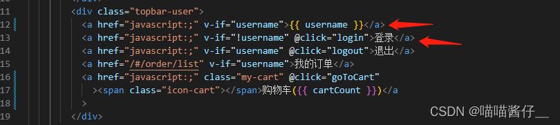 login () {this.$router.push('/login')},goToCart () {this.$router.push('/cart')}
