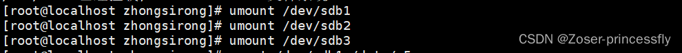 ③但是后来我看题目要求是学号后三位,我搞的是123,所以对先前的操作进行一个umount操作,如下: