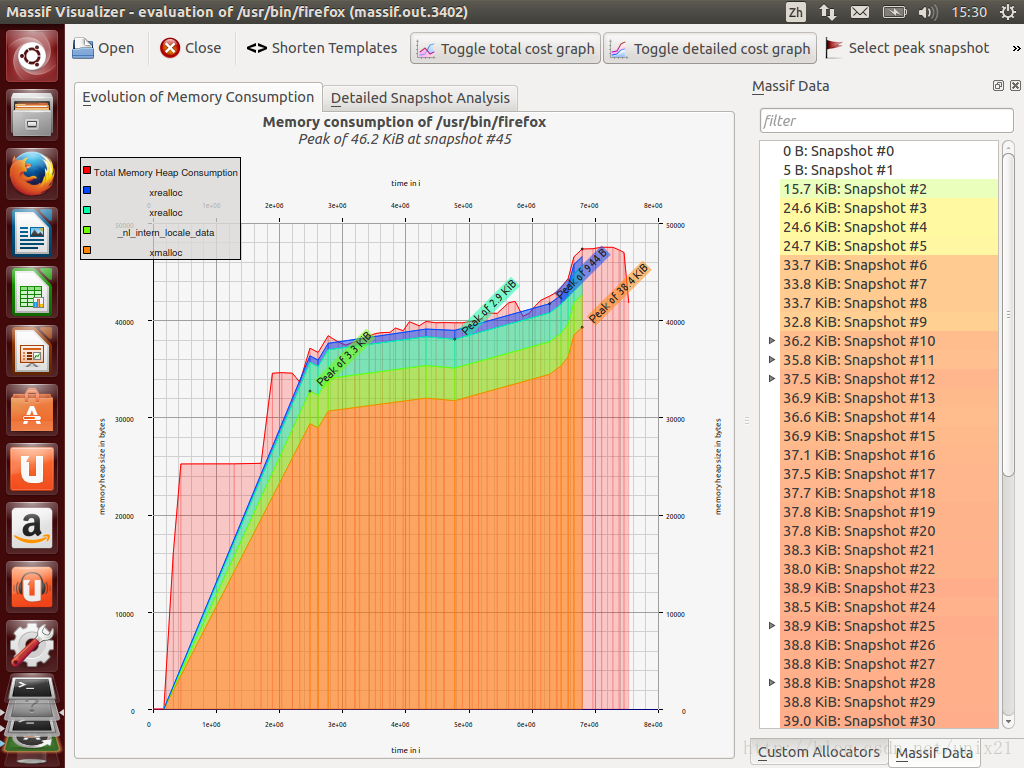在massif-visualizer下看图形化的:massif.out.4144