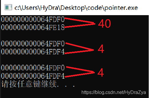 {int arr[10] = {1,2,3,4,5,6,7,8,9,0}; printf("%p\n", &arr);printf("%p\n", &arr+1); printf("\n%p\n", arr);//地址 = 首元素地址printf("%p\n", arr+1);printf("\n%p\n", &arr[0]);printf("%p\n", &arr[0]+1);return 0;