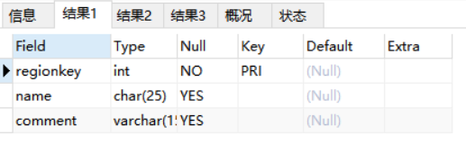 CREATE TABLE region1(regionkey INT PRIMARY KEY,name CHAR(25),comment VARCHAR(150)