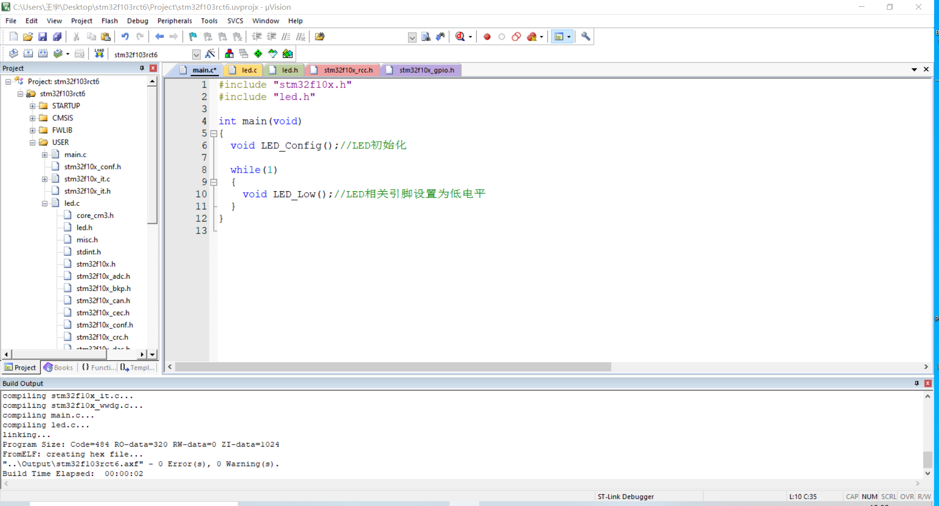 4.在main.c文件中调用编写好的库函数文件时,一定要用先导入对应库函数的头文件(#include "led.h")