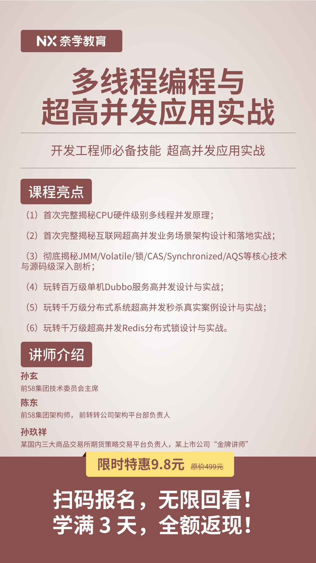 学满3天 全额返现!