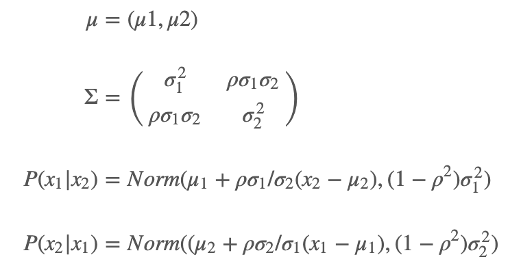 而在用转移核对多元变量分布进行抽样的时候,可以对多元变量的每一个变量的条件分布一次分别进行抽样,从而实现对整个多元变量的一次抽样。