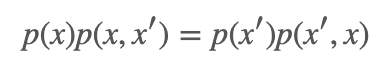 并且根据细致平衡方程,p(x) 即为这个转移核 p(x,x′) 的平衡分布。