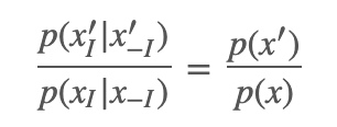 在很多情况下,我们的目标分布是多元联合概率分布 ,我们可以用条件分布概率的比来计算联合概率的比,从而提升计算效率。即: