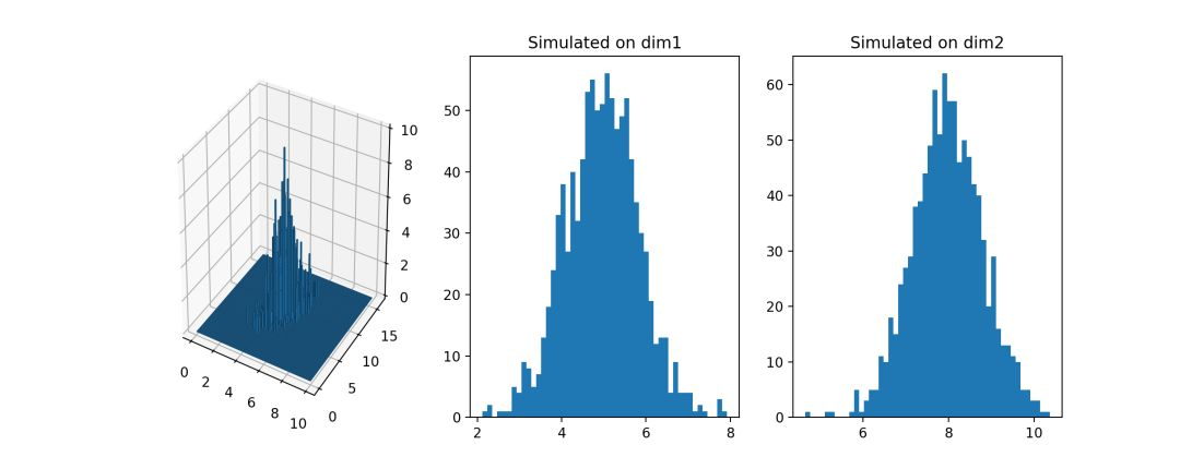 ax.set_title("Simulated on dim1")ax = fig.add_subplot(133)