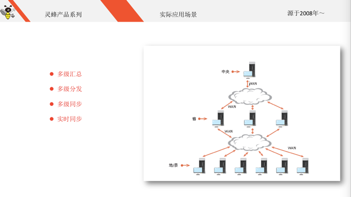 在数据实时同步中涉及多级汇总、多级分发、多级同步、实时同步、双向同步