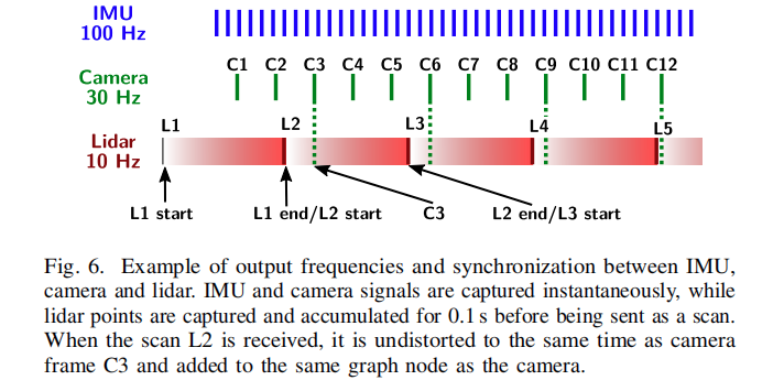 10 当平台静止时,为了限制漂移和因子图的增长,当三种模态(相机、激光雷达、IMU)中的两种更新报告没有运动时,我们向图中添加了零速度约束