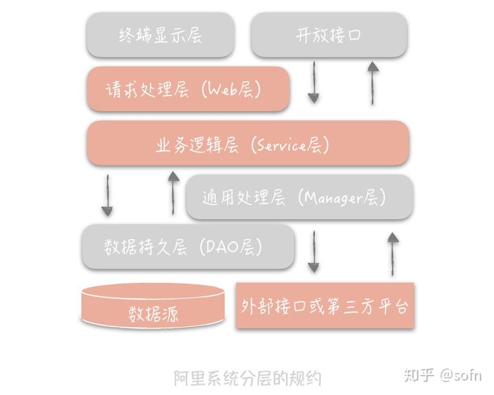 架构来源:参照参照阿里发布的《阿里巴巴 Java 开发手册 v1.4.0(详尽版)》,将原先的三层架构细化而来