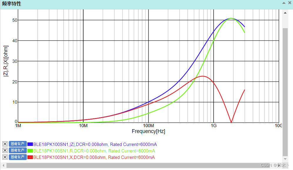 如图4.1所示,磁珠等效于电阻R和电感L的串联,电阻成分R和电感成分X会随着频率变化而变化。