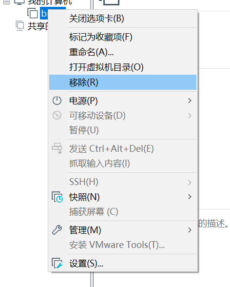 很多伙伴估计就是选择虚拟机,右键点击移除,就像这样: