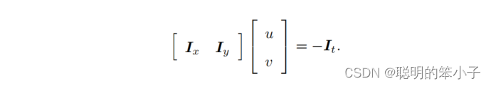 ,这个值也可以通过计算前后帧的灰度变化量得来。上下的两个未知量就是我们要求的量,分别是像素在x和y方向的运动速度,记作