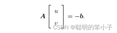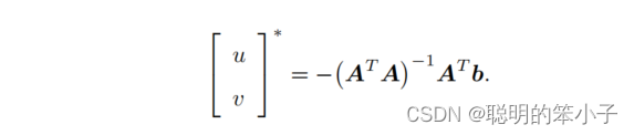 这个方程只有两个未知数u和v,但是有w*w个方程,所以是一个超定线性方程。可以利用传统的最小二乘法来求解: