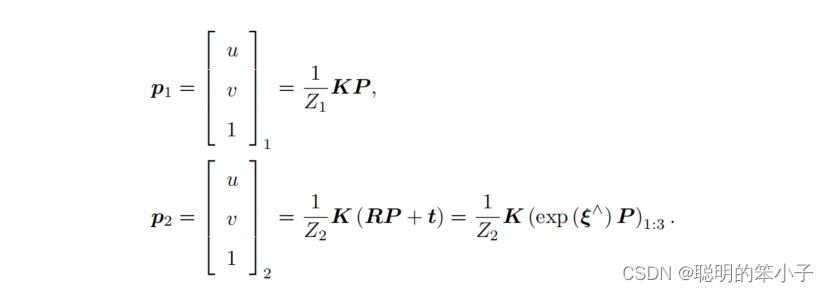 考虑3D空间中的某个点P,它的世界坐标是,它在两个相机上成像,记非齐次像素坐标为