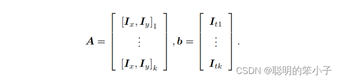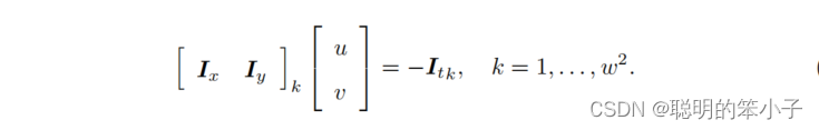 可以看出这是一个两个未知数的一次方程,是无解的。但这只是一个点的等式,可以利用很多个特征点列出相似的等式来求解。在LK光流中,假设某一个w*w的窗口内的像素具有相同的运动,这样就可以列出个等式,