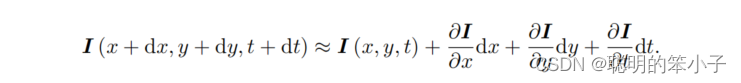 当一个相机运动时,图像也会随着改变,因此可以将图像像素值(灰度值)看作是一个关于像素坐标和时间的函数。那么对于某个空间点,在t时刻的像素坐标是x,y。由于相机的运动,他的图像坐标在不断变化。如果我们假设这个空间点对应的像素点灰度值在运动过程中是保持灰度不变的,即满足灰度不变假设,那么就有: