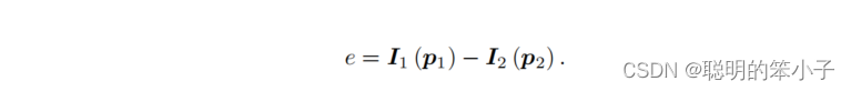 分别是两个相机下的深度。不同于特征点匹配法,直接法的误差定义为点P在不同像素坐标系下的广度误差(Photometric Error),也就是两个像素之间的亮度误差,这个假设的前提还是基于灰度不变假设: