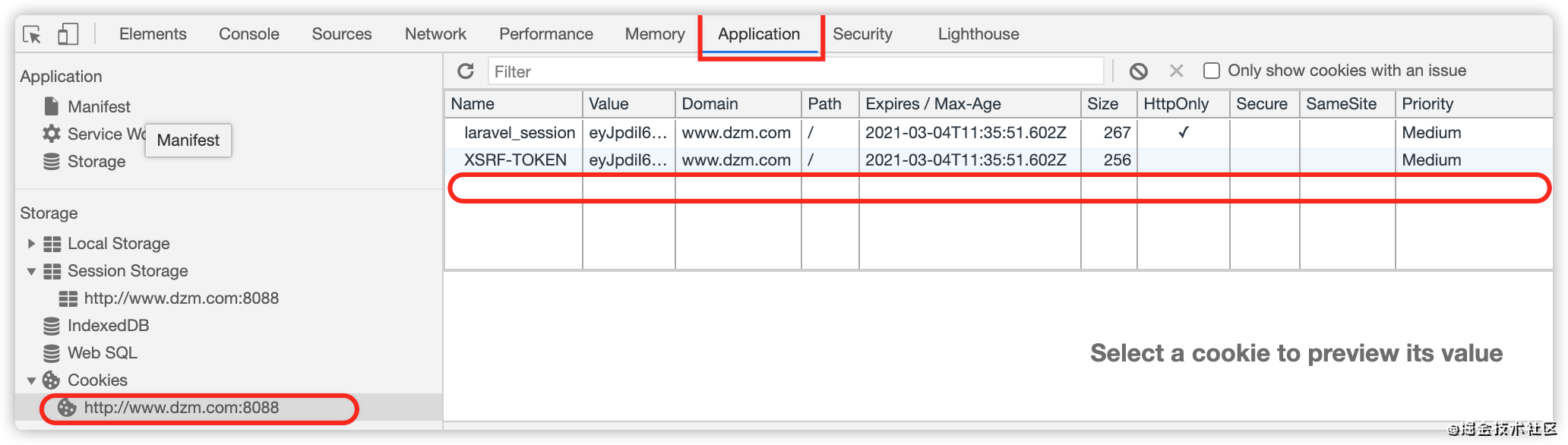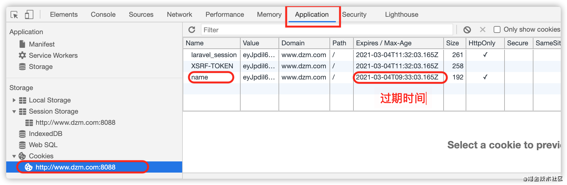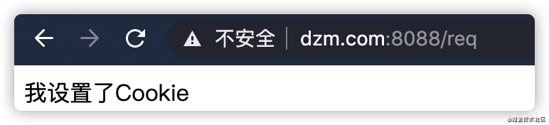 Route::get('req', function () {// 设置 cookie,1分钟有效期return response('我设置了Cookie')->cookie('name', 'dzm', 1);// 获取 cookiereturn request() ->cookie('name'); });