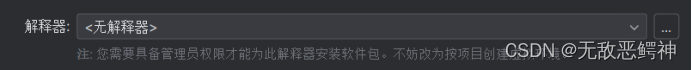 之前看到一篇文章说需要将上图的“基础解释器”和左边导航栏第三个系统解释器的保持一致,但需要以管理员权限更改,