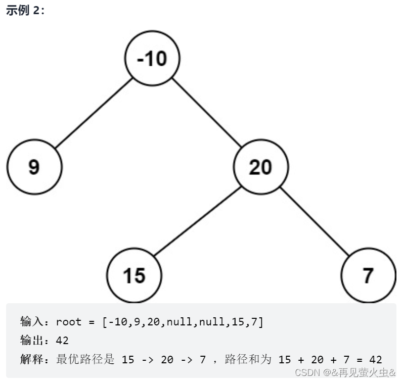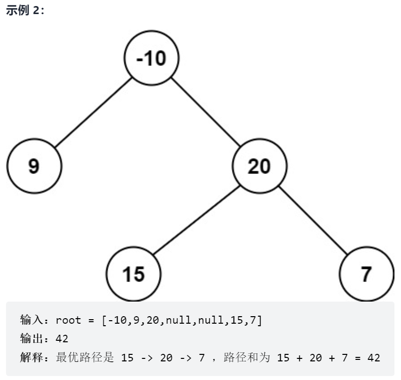 路径 被定义为一条从树中任意节点出发,沿父节点-子节点连接,达到任意节点的序列。同一个节点在一条路径序列中 至多出现一次 。该路径 至少包含一个 节点,且不一定经过根节点。