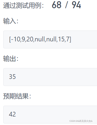 class Solution {public int maxPathSum(TreeNode root) {int[] ans = getMaxPathSum(root, root);return ans[0];}public int[] getMaxPathSum(TreeNode root, TreeNode sourceRoot) {int[] ans = new int[2];ans[0] = -1001;// !!!记得初始化ans[1] = 0;if (root == null) return ans;int[] leftPathSum = getMaxPathSum(root.left, sourceRoot);int[] rightPathSum = getMaxPathSum(root.right, sourceRoot);// 根节点值大于零if (root.val >= 0) {// 左右两子树的根节点都没有被采纳if (leftPathSum[1] == 0 && rightPathSum[1] == 0) {if (root.val >= leftPathSum[0] && root.val >= rightPathSum[0]) {ans[0] = root.val;ans[1] = 1;// 表示将根节点纳入选择的路径中} else {ans[0] = Math.max(leftPathSum[0], rightPathSum[0]);ans[1] = 0;}}// 只有左子树根节点被采纳else if (leftPathSum[1] == 1 && rightPathSum[1] == 0) {// 左子树最优值+根节点值 >= 右子树最优值if (root.val + leftPathSum[0] >= rightPathSum[0]) {ans[0] = root.val + leftPathSum[0];ans[1] = 1;} // 左子树最优值+根节点值 < 右子树最优值else {ans[0] = rightPathSum[0];ans[1] = 0;// 由于右子树根节点没有被采纳,所以这里断开了}}// 只有右子树根节点被采纳else if (rightPathSum[1] == 1 && leftPathSum[1] == 0) {if (root.val + rightPathSum[0] >= leftPathSum[0]) {ans[0] = root.val + rightPathSum[0];ans[1] = 1;} else {ans[0] = leftPathSum[0];ans[1] = 0;}}// 左右两子树的根节点都被采纳else {// 当root节点为为最开始树的根节点时,可以同时采纳左右两子树if (root == sourceRoot) {ans[0] = root.val + leftPathSum[0] + rightPathSum[0];} else {ans[0] = root.val + Math.max(leftPathSum[0], rightPathSum[0]);}ans[1] = 1;}} else {ans[0] = Math.max(leftPathSum[0], rightPathSum[0]);ans[0] = Math.max(ans[0], root.val);}return ans;}