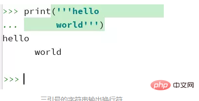 3、还有一种和代码换行比较类似的字符串内换行,必须使用三引号才能达到这个目的(单/双均可),这种方法可以不用字符串拼接\n就可以输出字符串内的换行符。