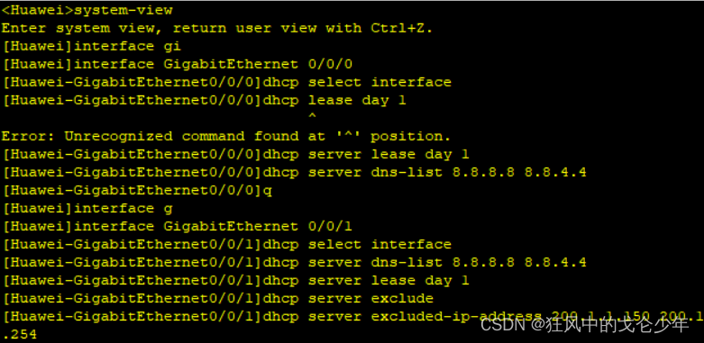 并给GigabitEthernet0/0/1接口设置排除200.1.1.150到200.1.1.254 IP地址