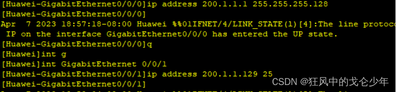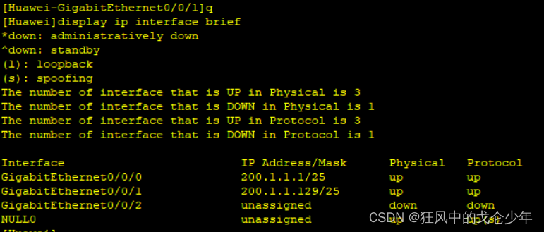 显示俩个接口的IP地址与子网掩码并观察俩接口是否双up