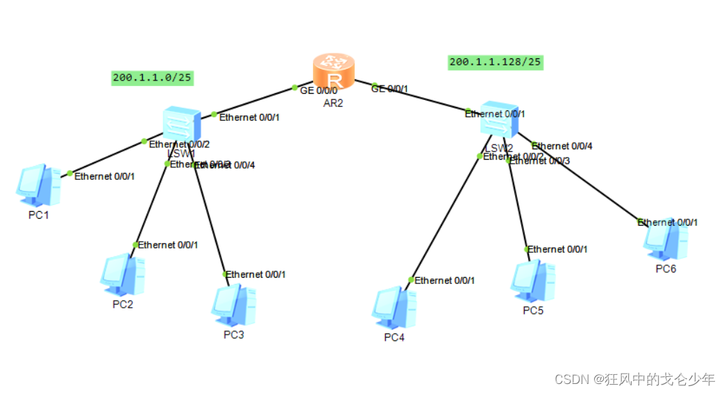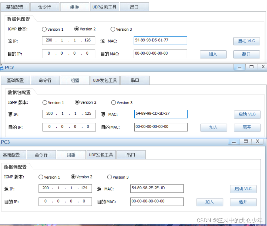 同一网段 PC 1(200.1.1.126) ping PC 3 (200.1.1.124)可ping通