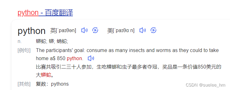 Python作为该编程语言的名字,是取自英国20世纪70年代首播的电视喜剧《蒙提·派森的飞行马戏团》(Monty Python's Flying Circus)。吉多是《蒙提 · 派森的飞行马戏团》的狂热爱好者,为此他将此编程语言取名为Python。