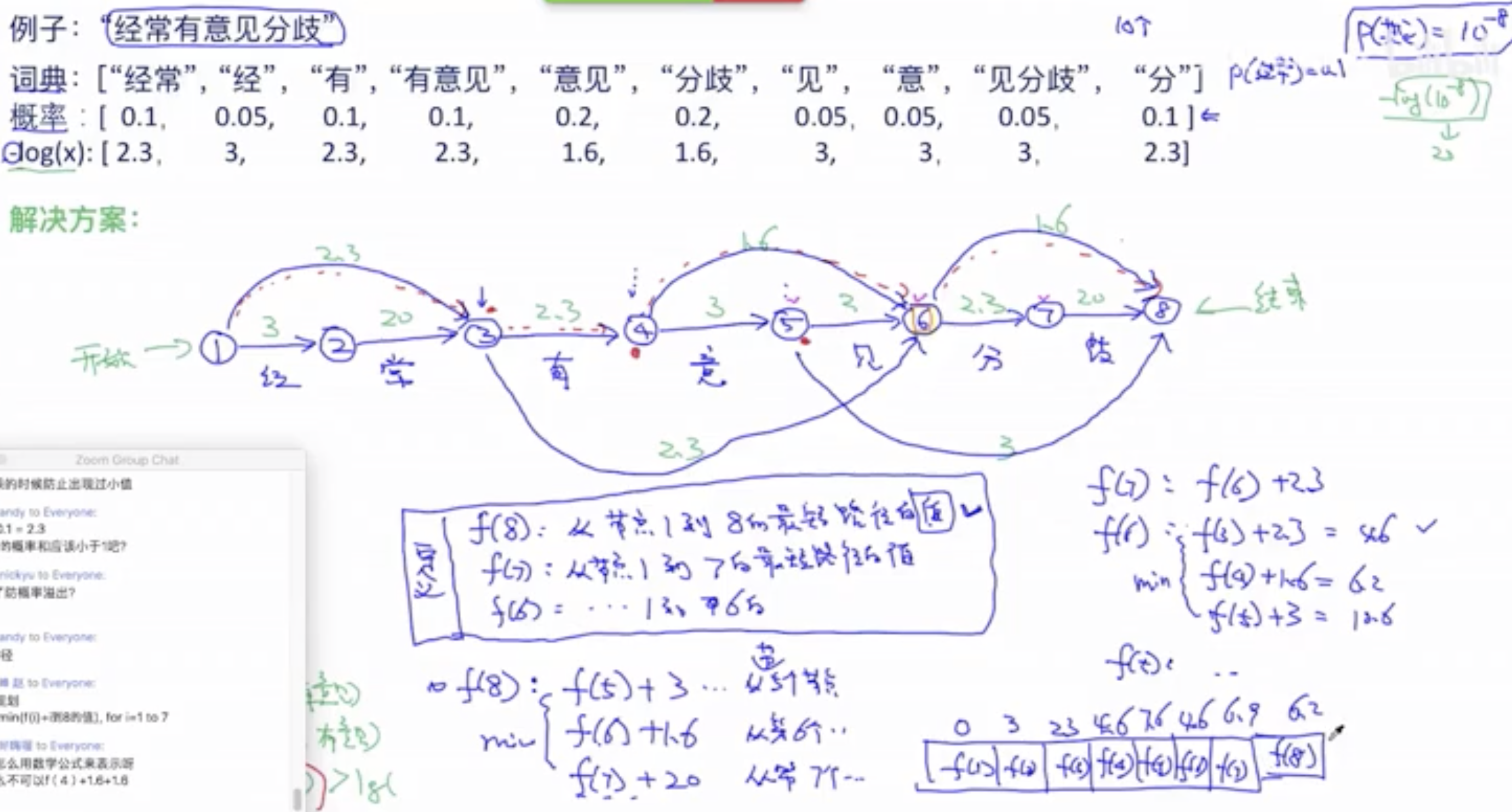 这节课老师只是简单介绍下维特比算法。后面的HMM 会继续介绍。比这里复杂多了。