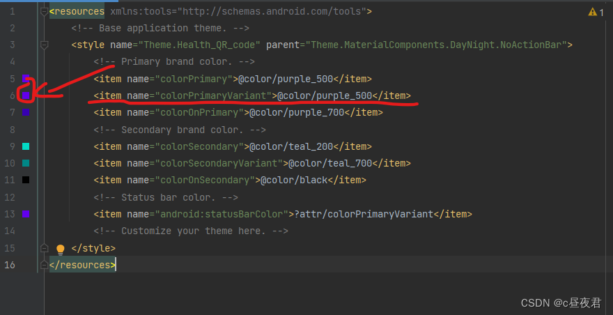 3.themes.xml(night)同理,不然深色模式(夜间模式)又跑出来了