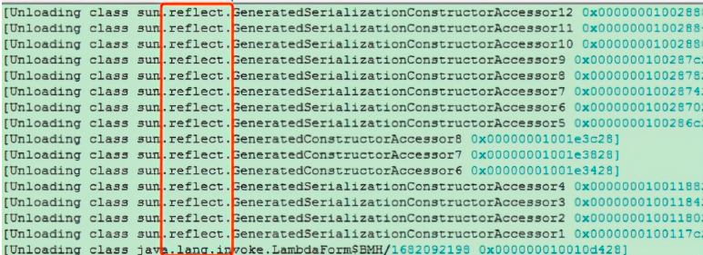 如果发现元空间大小是持续上涨的,则需要检查代码是否存在大量的反射类加载、动态代理生成的类加载等导致。可以通过-XX:+TraceClassLoading -XX:+TraceClassUnloading记录下类的加载和卸载情况,反推具体问题代码。