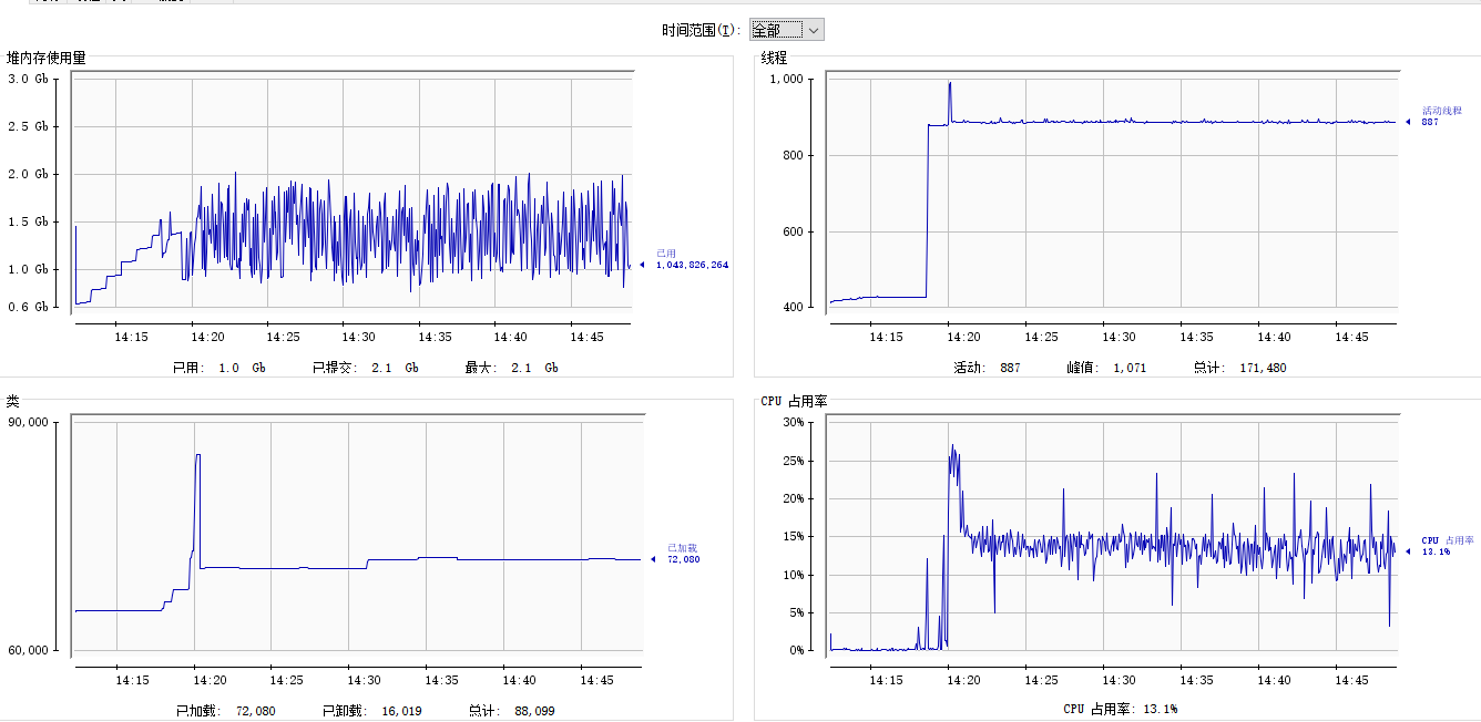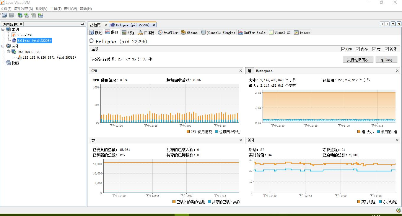 jvisualvm与jConsole连接方式一致,连接后界面如下: