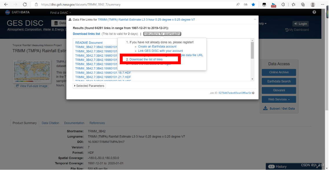 查找自己需要的数据集链接,这里选择3B42,点击进入相应的链接