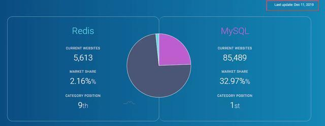 笔者查了datanyze.com网站看了下Redis和MySQL的最新市场份额和排名对比以及全球Top站点的部署量对比(网站数据2019.12):