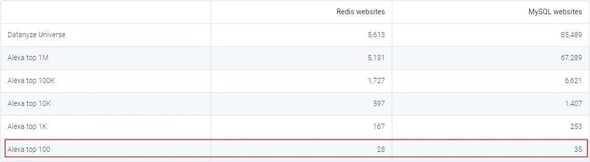 可以看到Redis总体份额排名第9并且在全球Top100站点中部署数量与MySQL基本持平,所以Redis还是有一定的江湖地位的。
