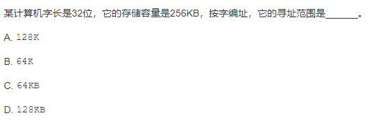 按计算机按32位字长单字编址。则单字的位数为32位,范围为(256*1024*8位)/32位=64K。(已化成位,故没有B单位)