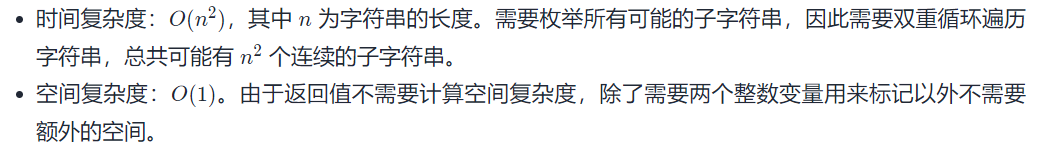 - 递归时,maxPos 用来记录最长完美字符串的起始索引,maxLen 用来记录最长完美字符串的长度。